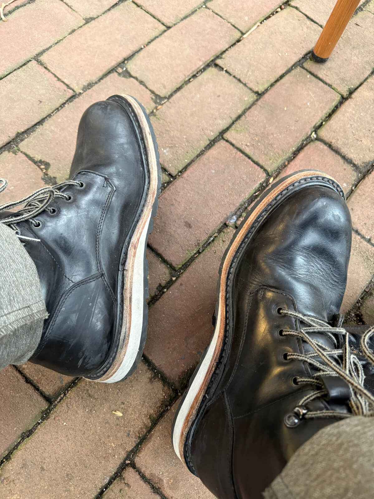 One last note: Chris mentioned that when it’s eventually time for a full re-sole, their cobbler in NYC quotes around $110 for the service using the same Vibram tread pattern. Given the Goodyear welt construction, that’s a legitimate long-game option. Based on my experience with them, I’ll probably go that route.